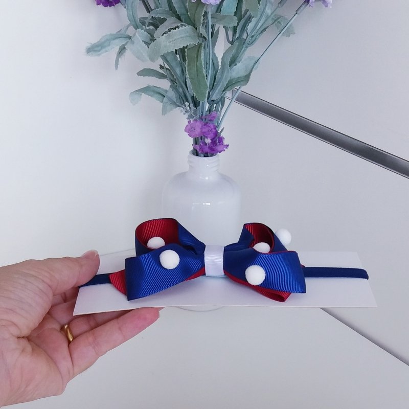 Faixa Meia de Seda Pequena Azul Vermelho/Pompom