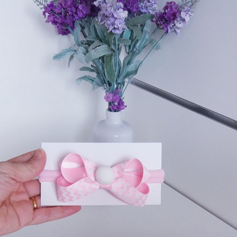 Faixa Meia de Seda Pequena Rosa Bebe/ Chevron