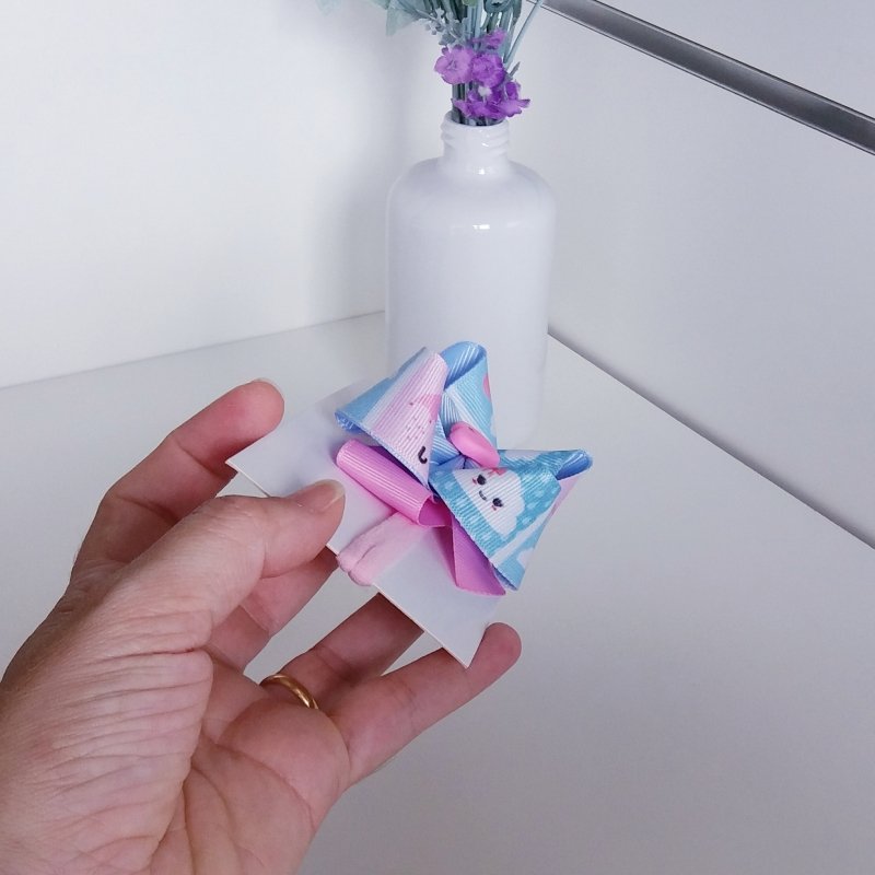 Faixa Meia de Seda Pequena Rosa/Nuvem coração