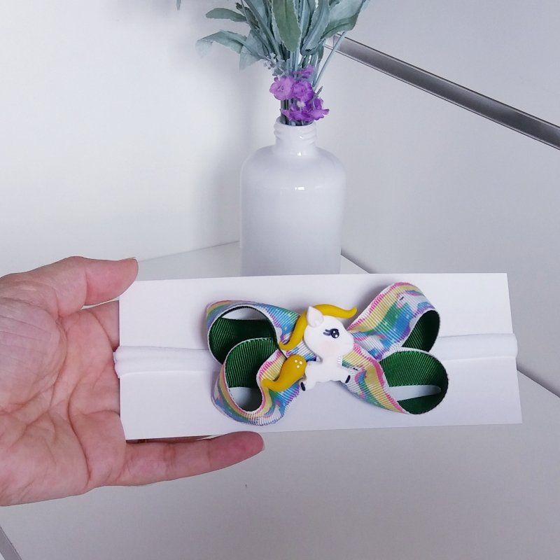 Faixa Meia de Seda Pequena Verde/Unicornio