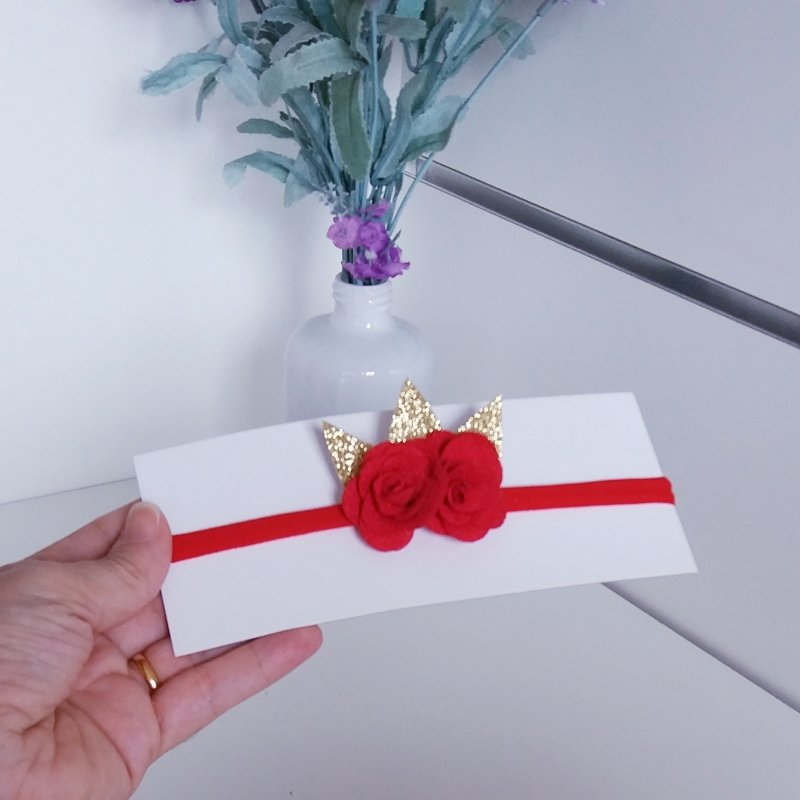 Faixa Meia de Seda Pequena Vermelho/Flores