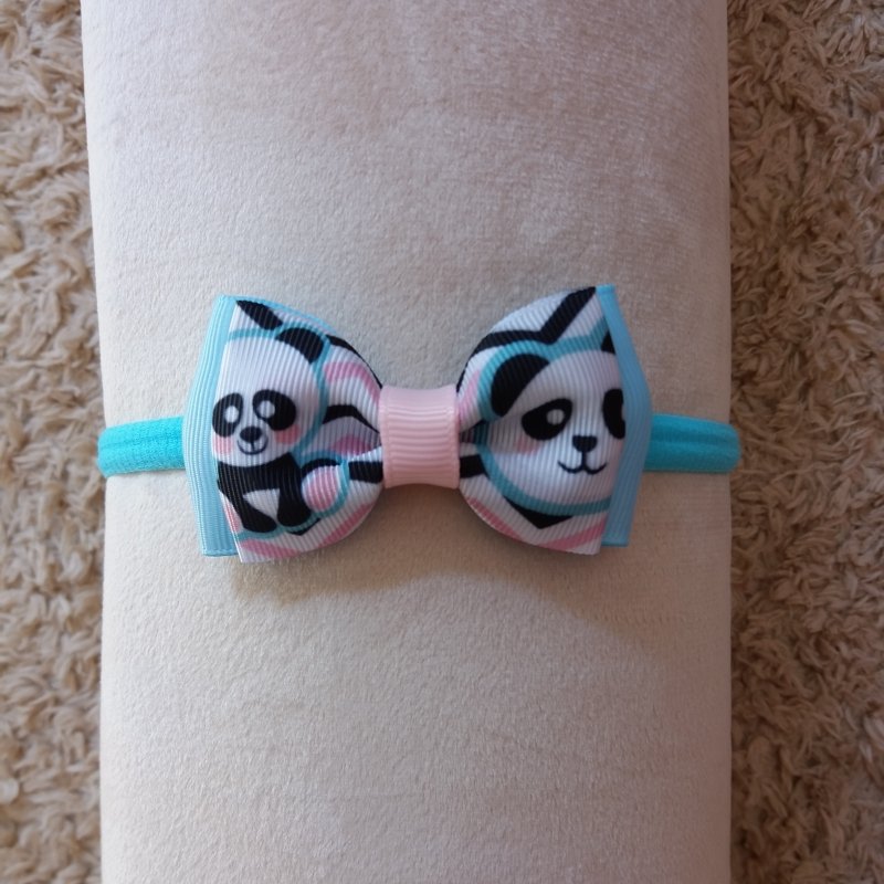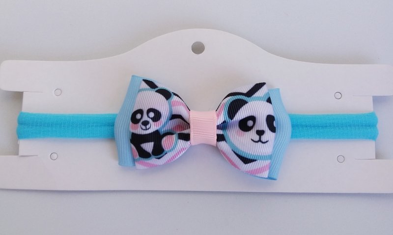 Faixa Meia de Seda RN Azul Bebê Panda Chevron