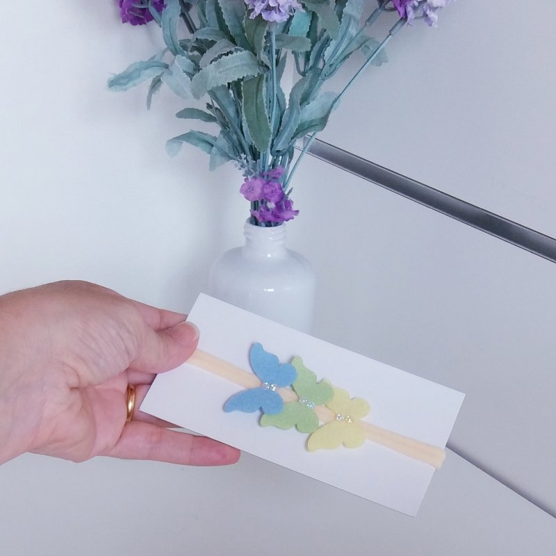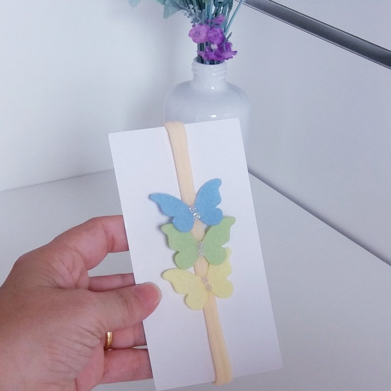 Faixa Meia de Seda RN Bege/Borboletas Coloridas