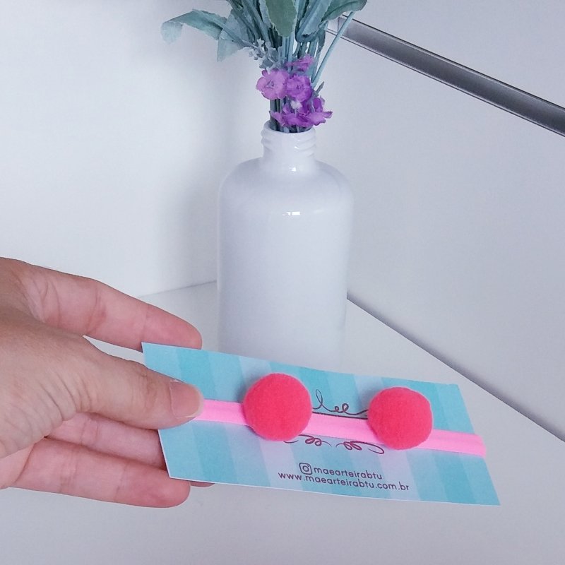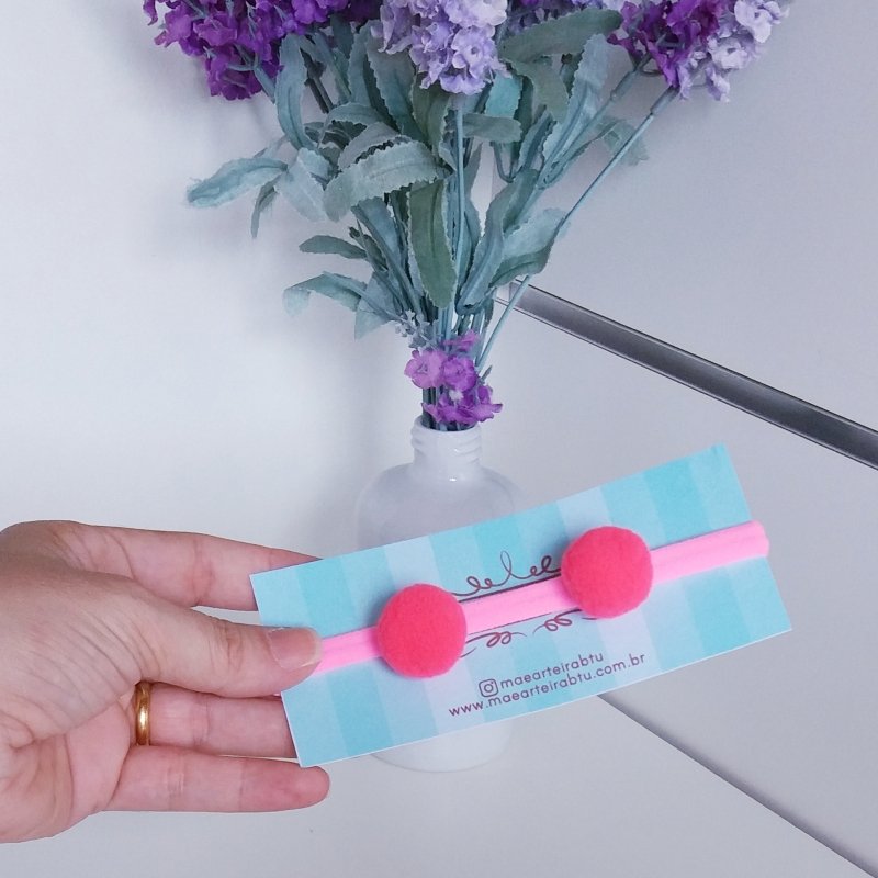 Faixa Meia de Seda RN Rosa Neon/Pompom