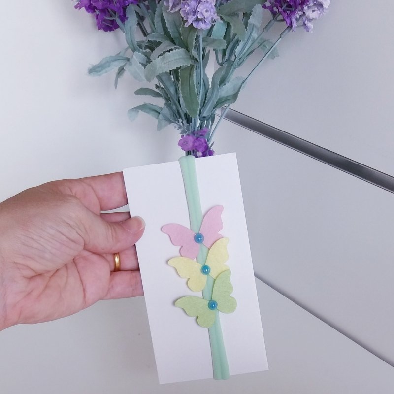 Faixa Meia de Seda RN Verde Agua/Borboletas Coloridas