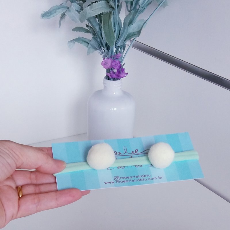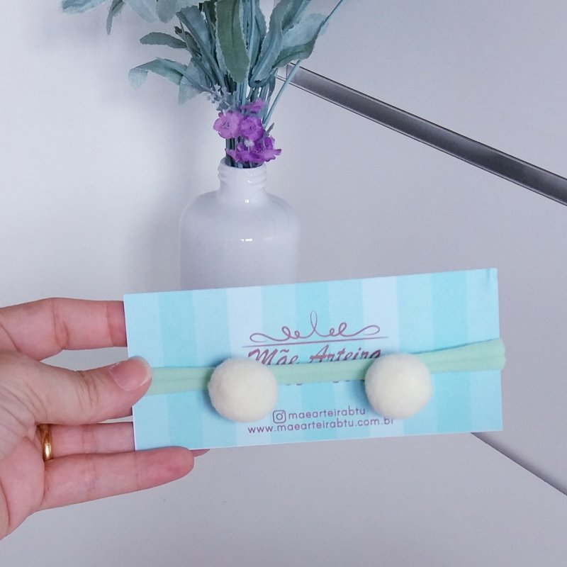 Faixa Meia de Seda RN Verde Agua/Pompom