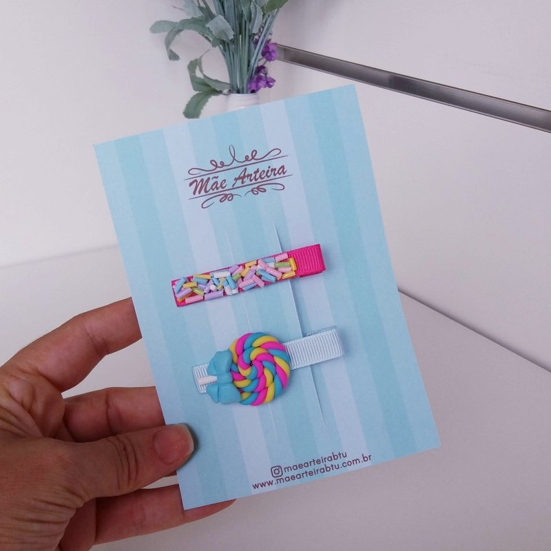 Hair Clip 2 Médio Azul Bebe/Lollipop Granulado