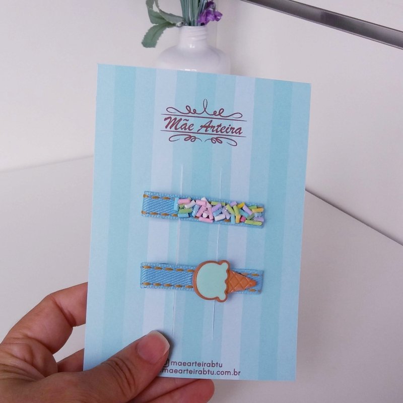 Hair Clip 2 Médio Jeans Claro/Ice Cream