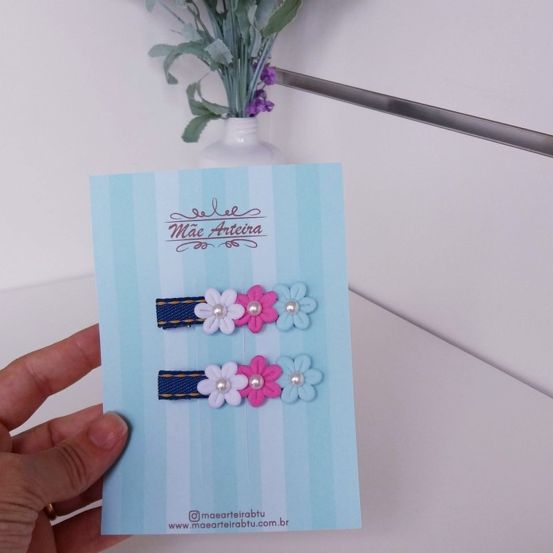 Hair Clip 2 Médio Jeans /Flor