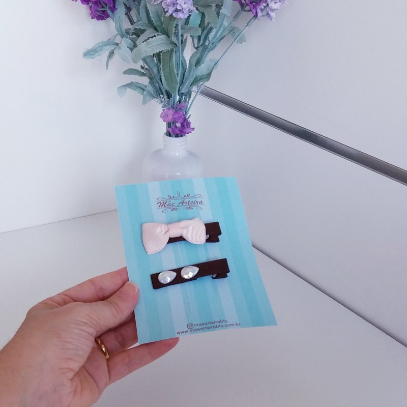 Hair Clip 2 Médio Marrom e Bege