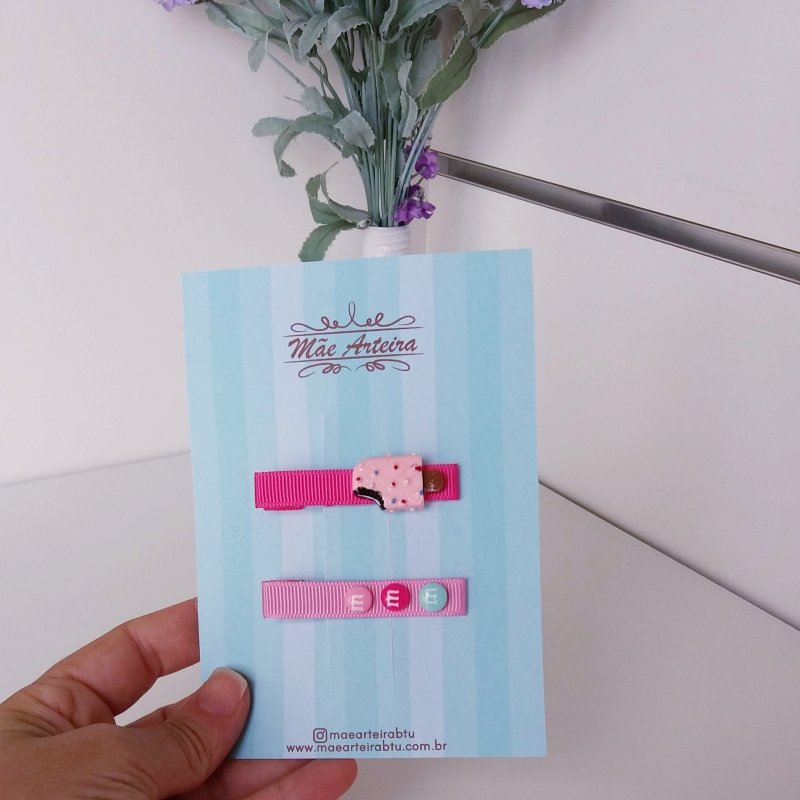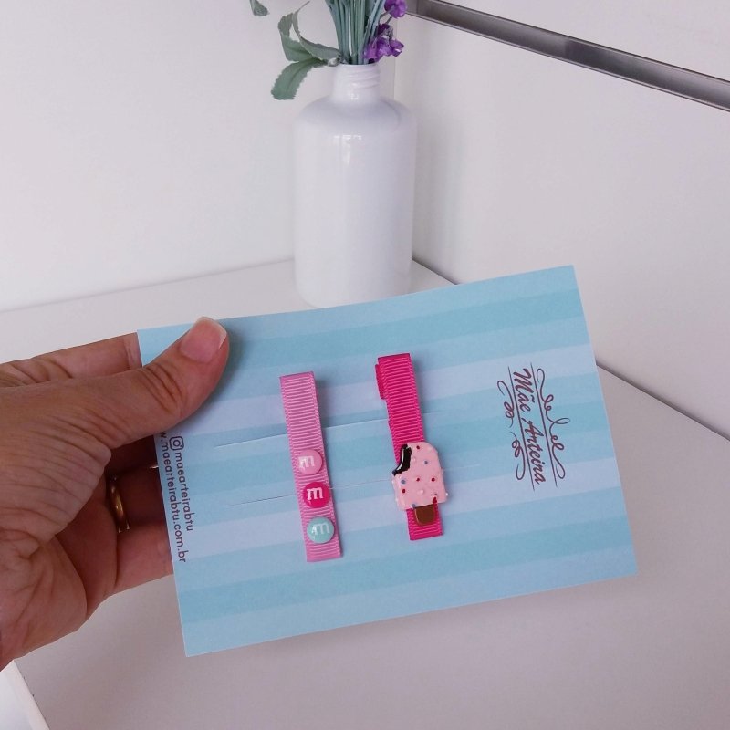 Hair Clip 2 Médio Rosa/Picolé M&M