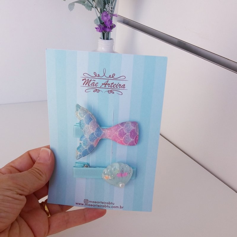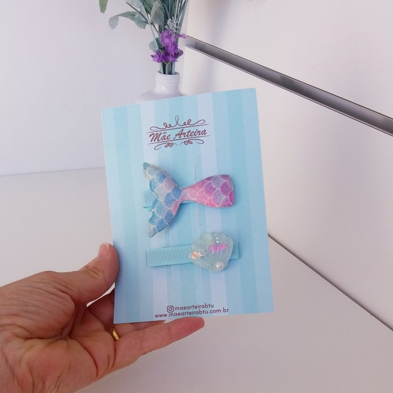 Hair Clip 2 Médio Verde Agua/Cauda Gliter