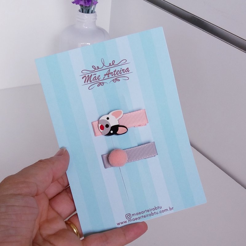 Hair Clip 2 Pequeno Cinza/Bulldog