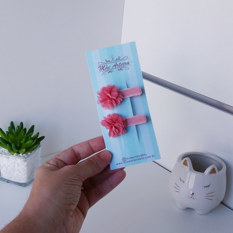 Hair Clip 2 Pequeno Veludo Pêssego/Flor