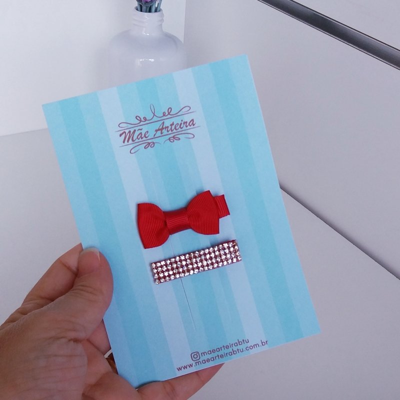 Hair Clip 2 Pequeno Vermelho/Strass Dourado