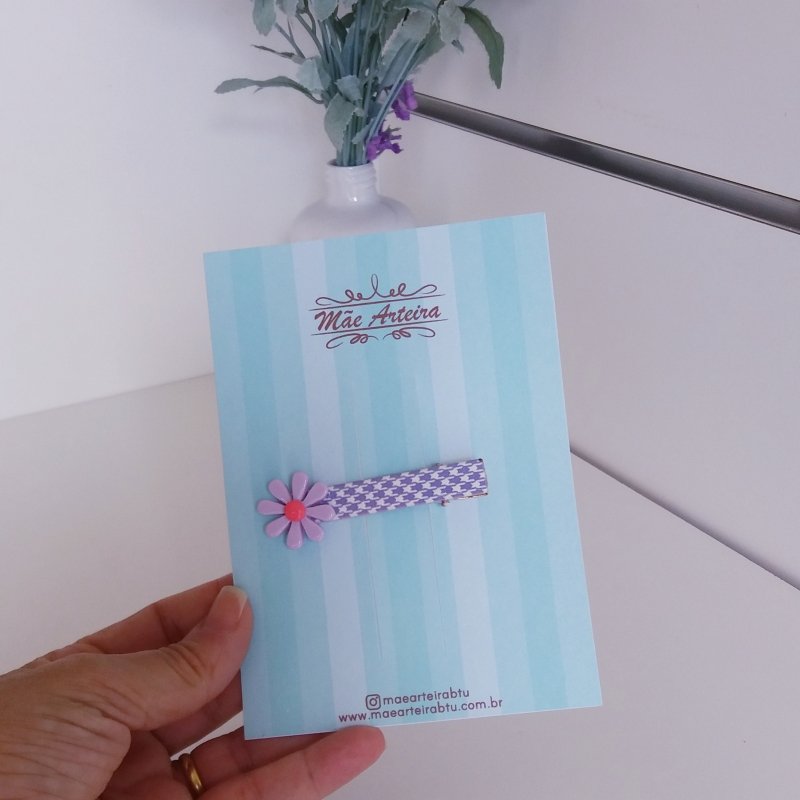 Hair Clip Grande Resina/Flor Lilas