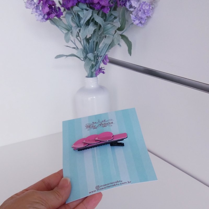 Hair Clip Grande Resina/Folhas Pink