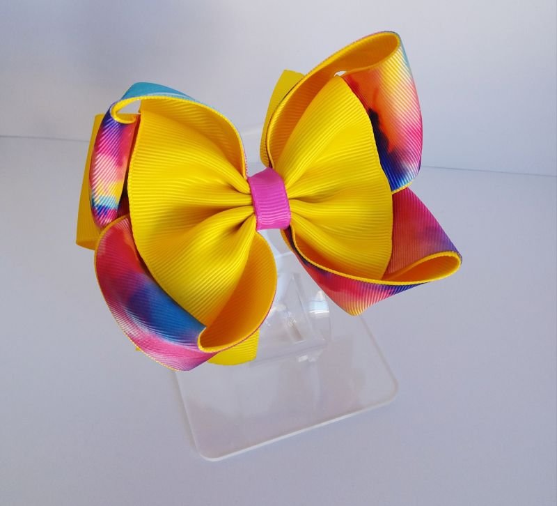 Laço Amora Grande Amarelo Canario e Floral Neon