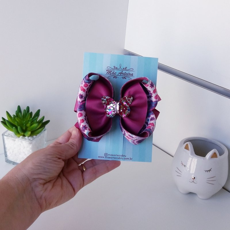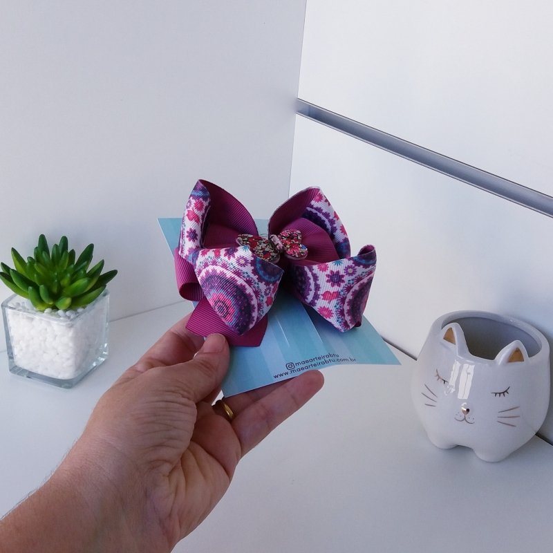 Laço Amora Grande Magenta e Mandala/Borboleta Brilho