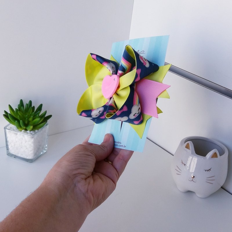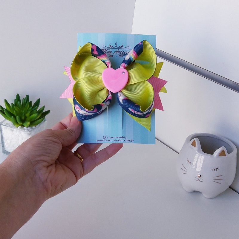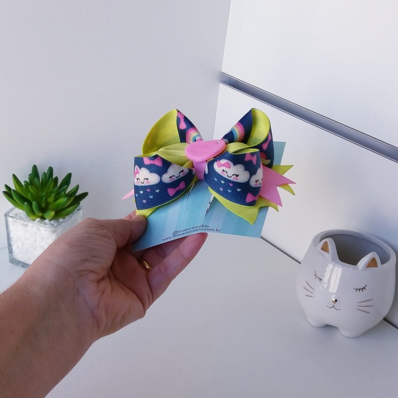 Laço Amora Invertido Grande Nuvem Azul e Amarelo Neon/Heart