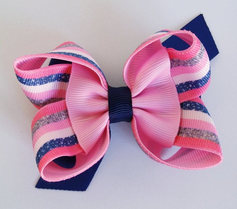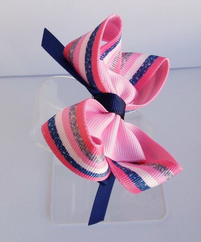 Laço Amora Pequeno Rosa Chiclete Listrado