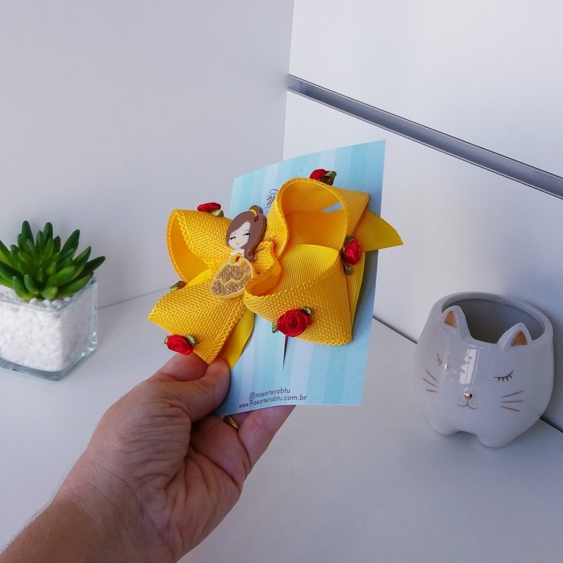 Laço Boutique Duplo Grande Amarelo Juta/Bella
