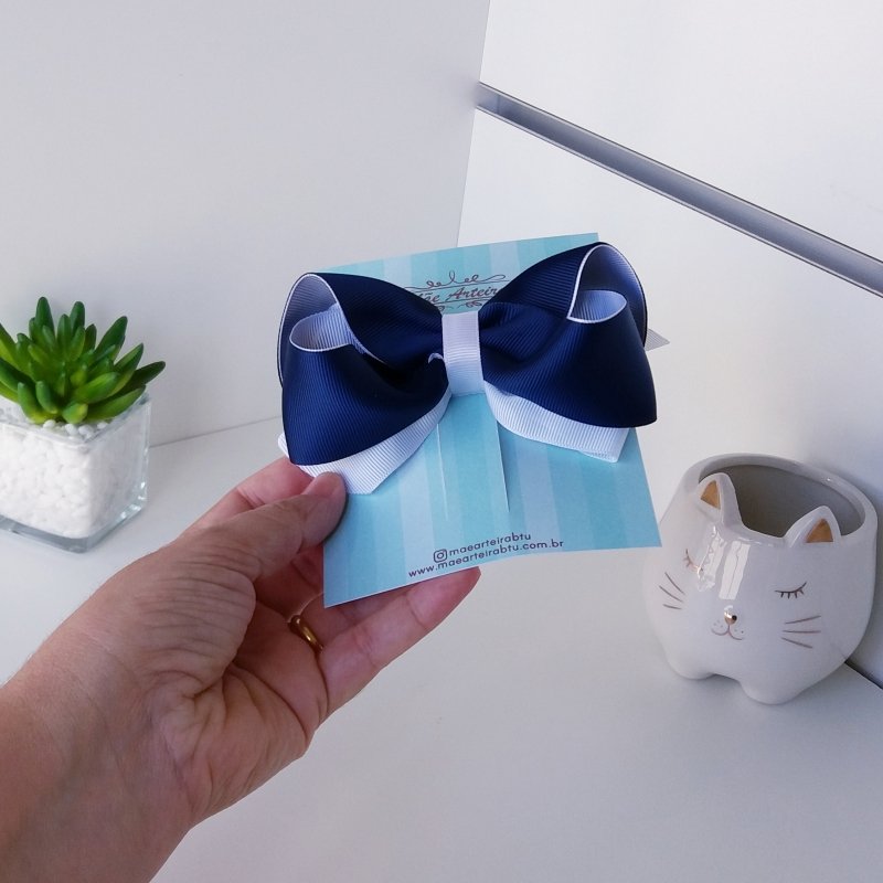 Laço Boutique Duplo Grande Azul Marinho e Branco