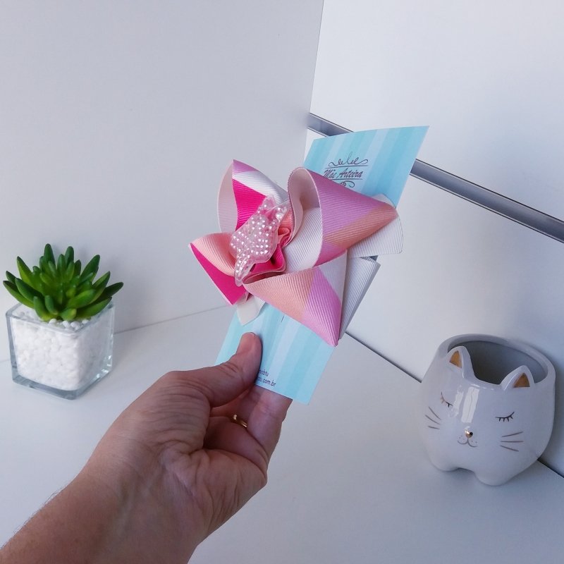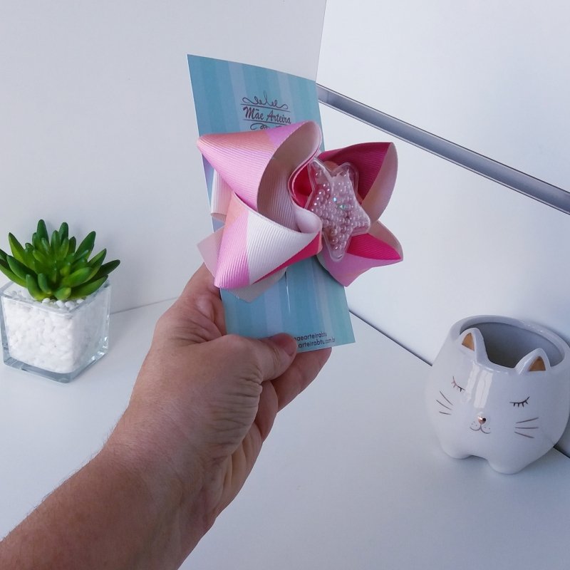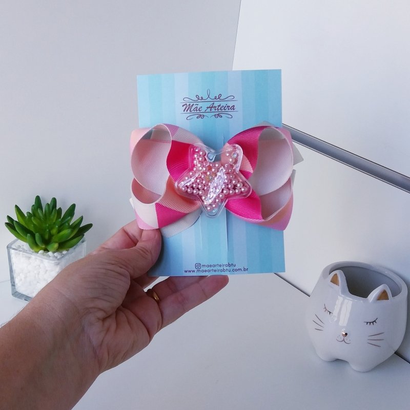 Laço Boutique Duplo Grande Bege e Geométrico/Star Transparente