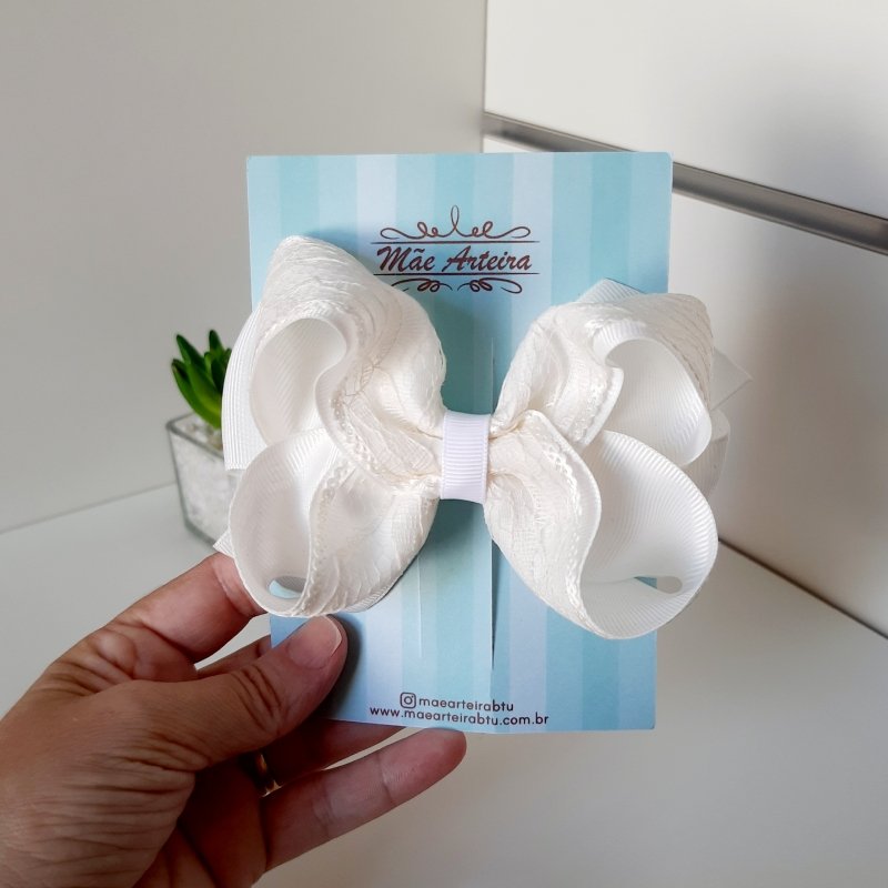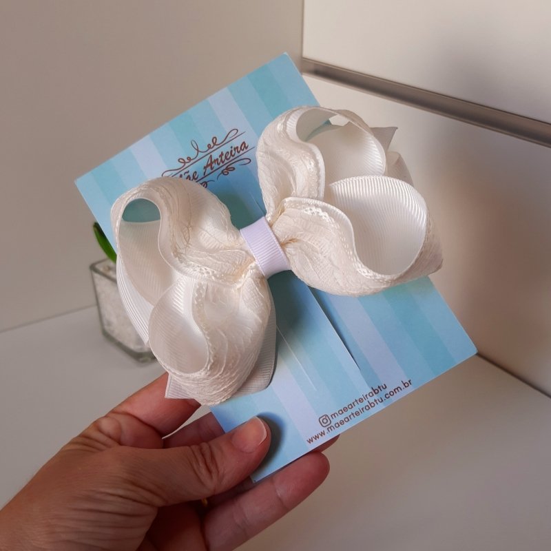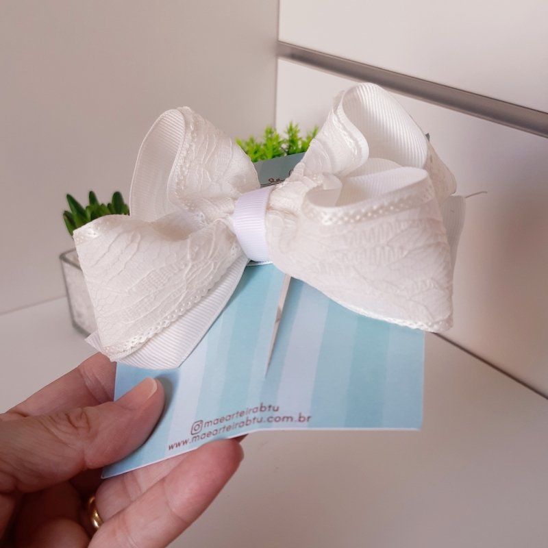 Laço Boutique Duplo Grande Off White Renda (Cod. B241)