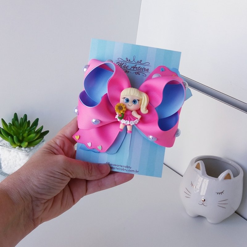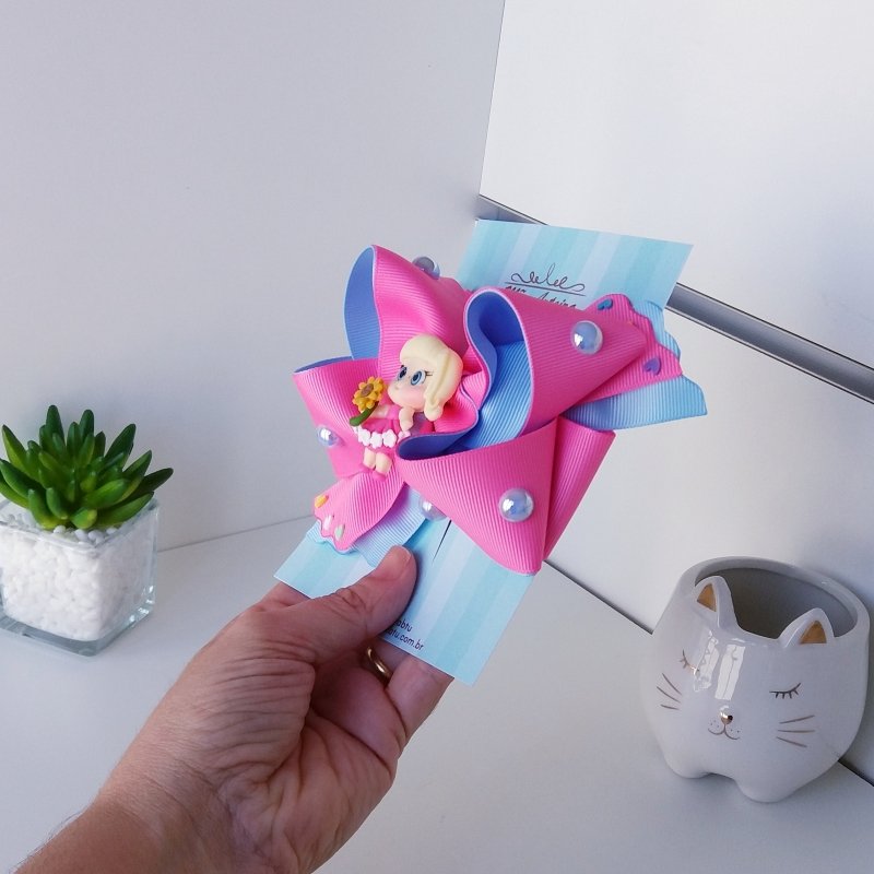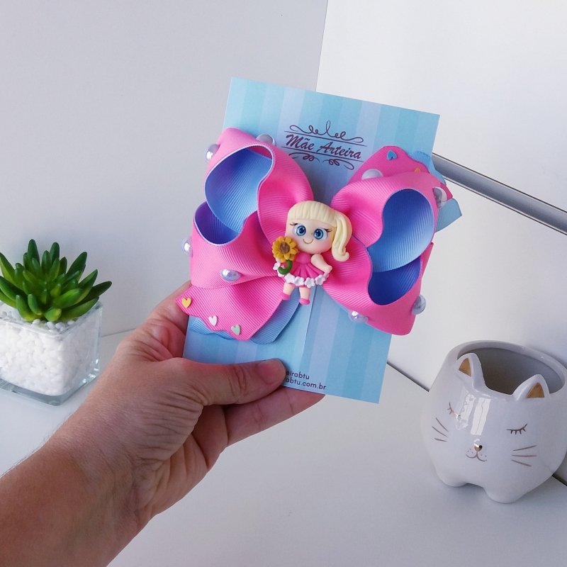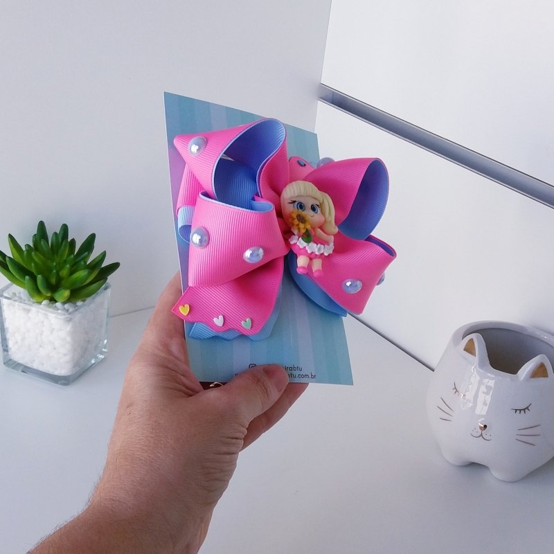 Laço Boutique Duplo Grande Pink e Azul/Pérola Girl