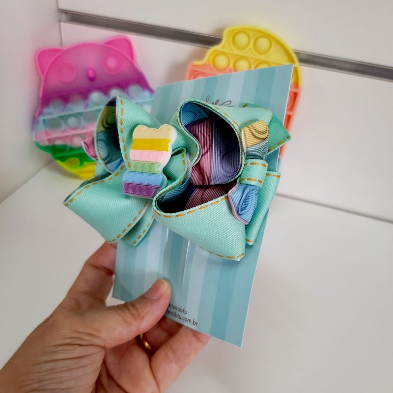 Laço Boutique Duplo Grande Pop IT/Verde Agua Urso
