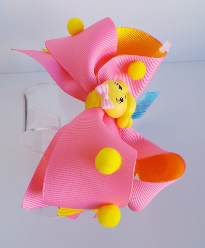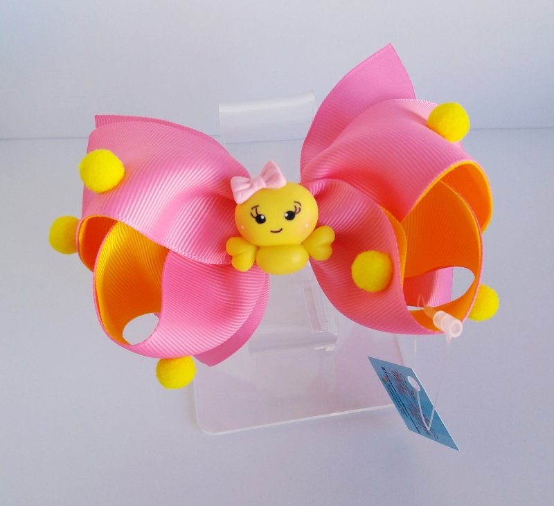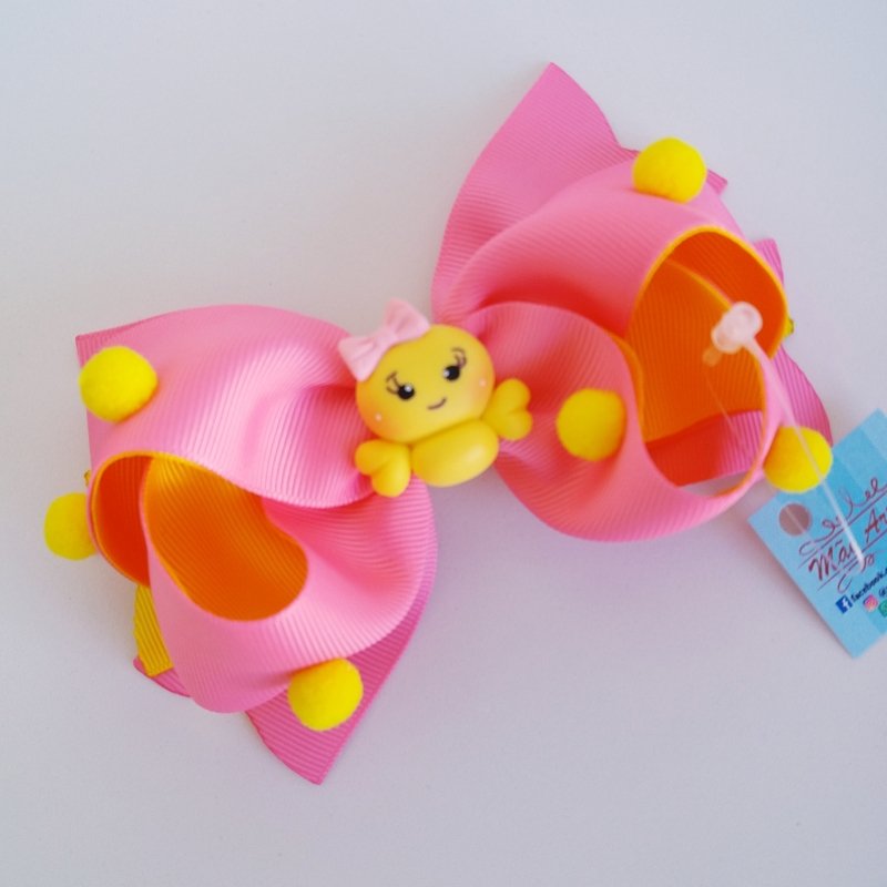 Laço Boutique Duplo Grande Rosa/Amarelo Passarinho