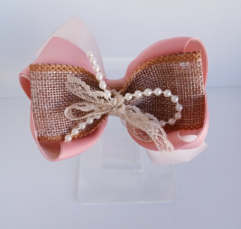Laço Boutique Duplo Grande Rosa Antique/Juta Pérola Renda