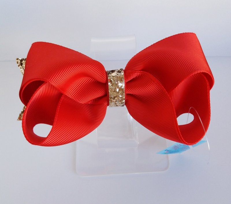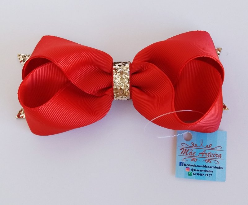 Laço Boutique Duplo Grande Vermelho com Dourado