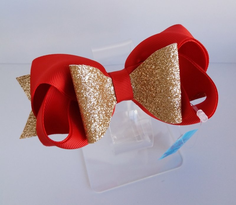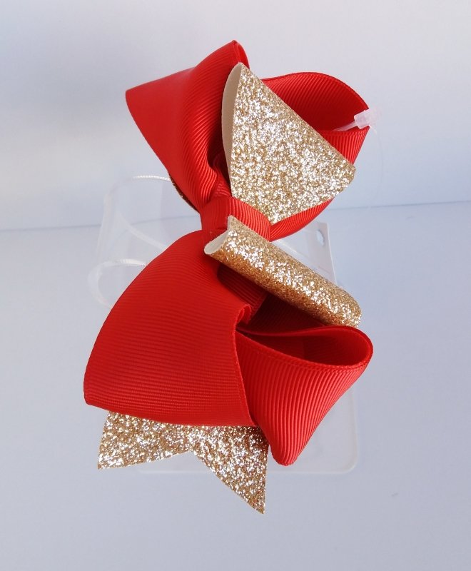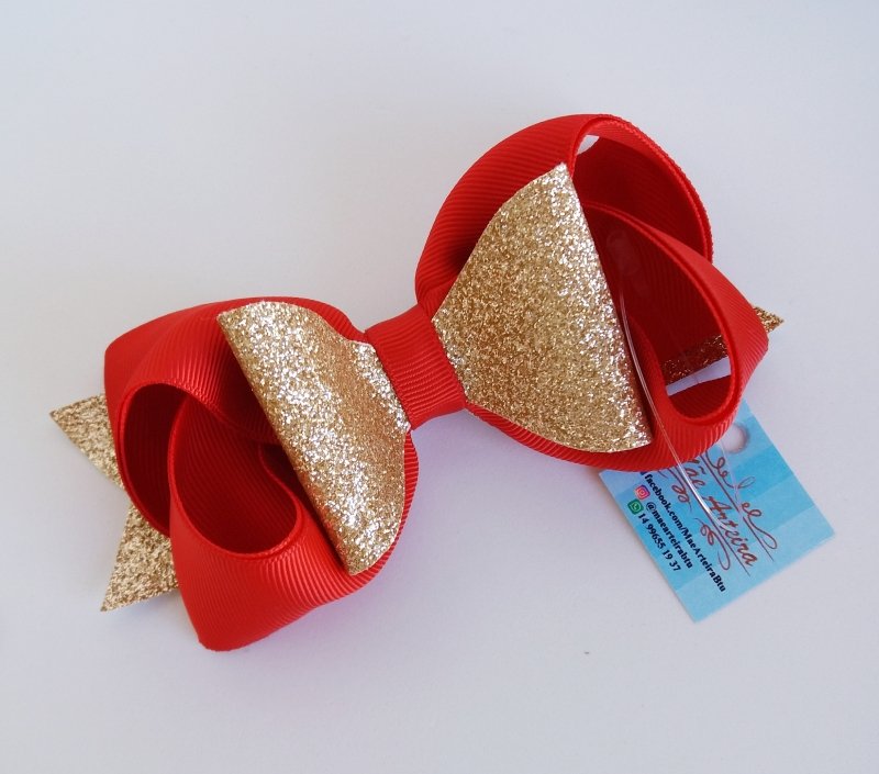 Laço Boutique Duplo Grande Vermelho com Laço Dourado