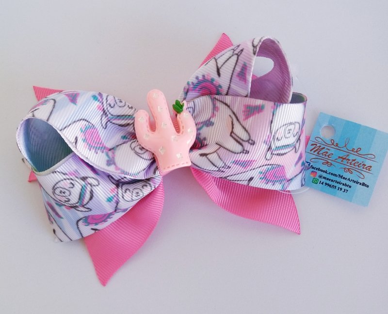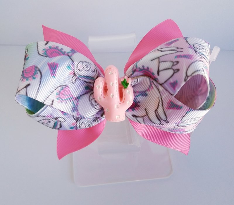 Laço Boutique Duplo Médio Rosa/Lhama Cacto