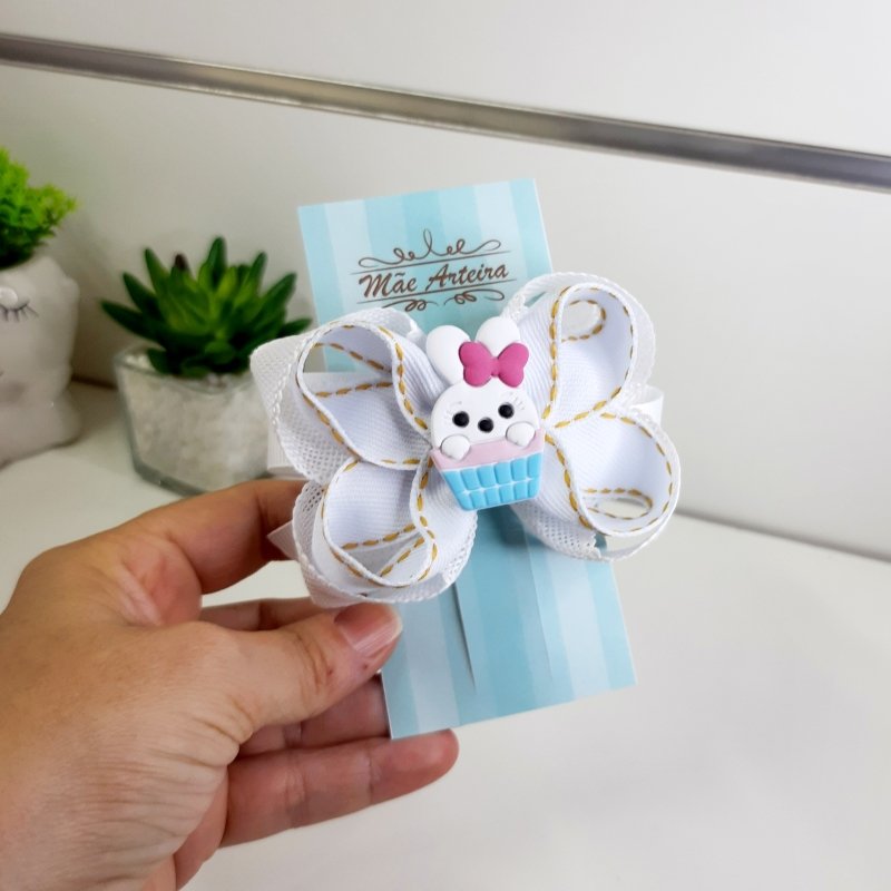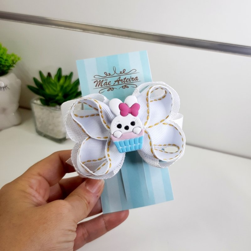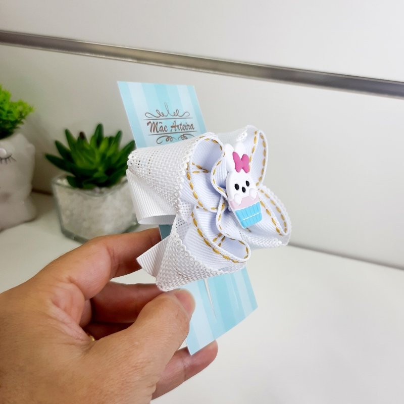 Laço Boutique Duplo Pequeno Branco Juta/ Coelho (Cod. B323)