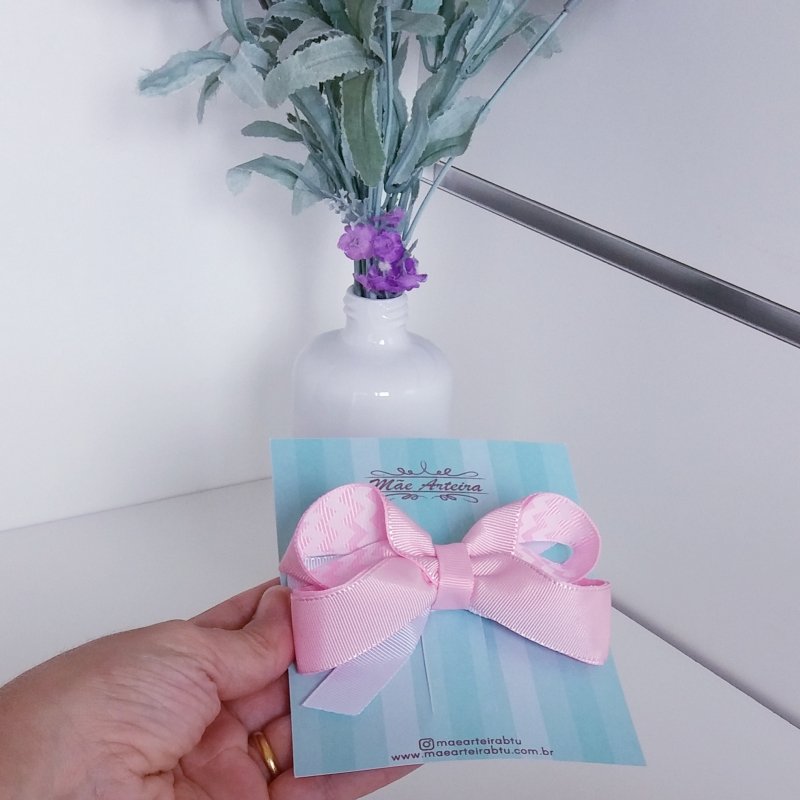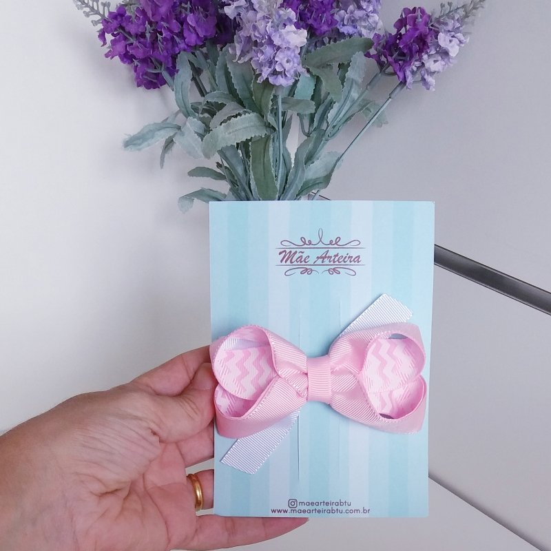 Laço Boutique Duplo Pequeno Rosa Chevron