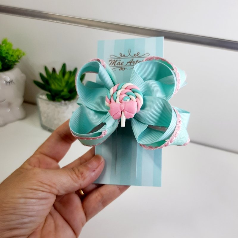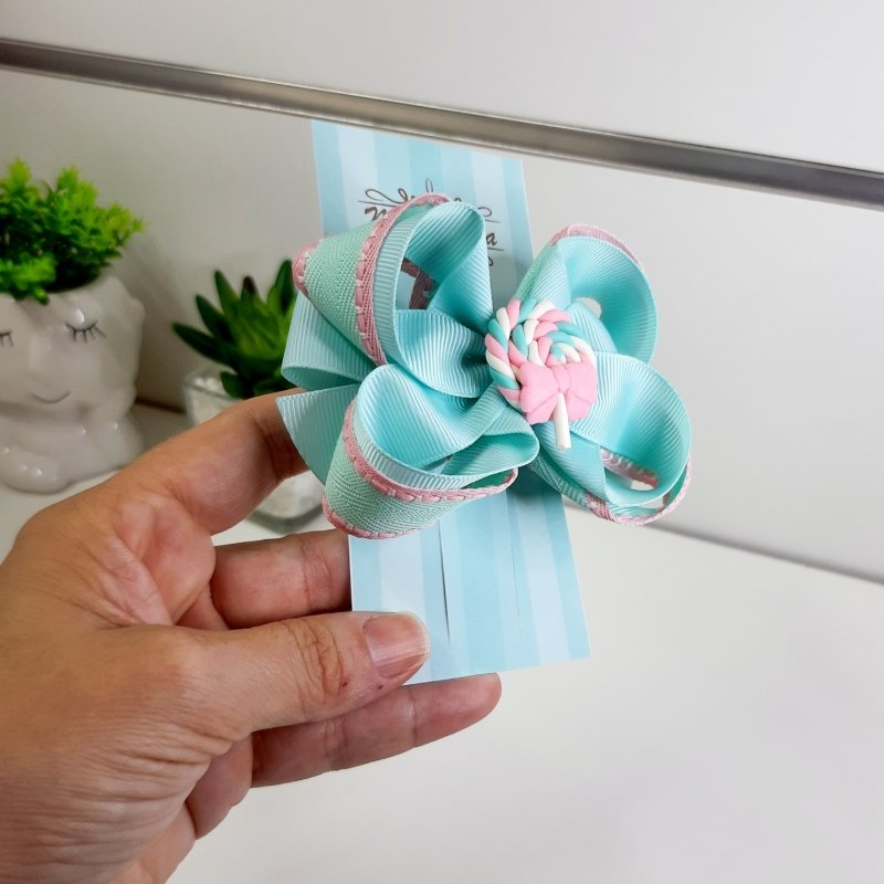 Laço Boutique Duplo Pequeno Verde Agua Rosa/Lollipop (Cod. B321)