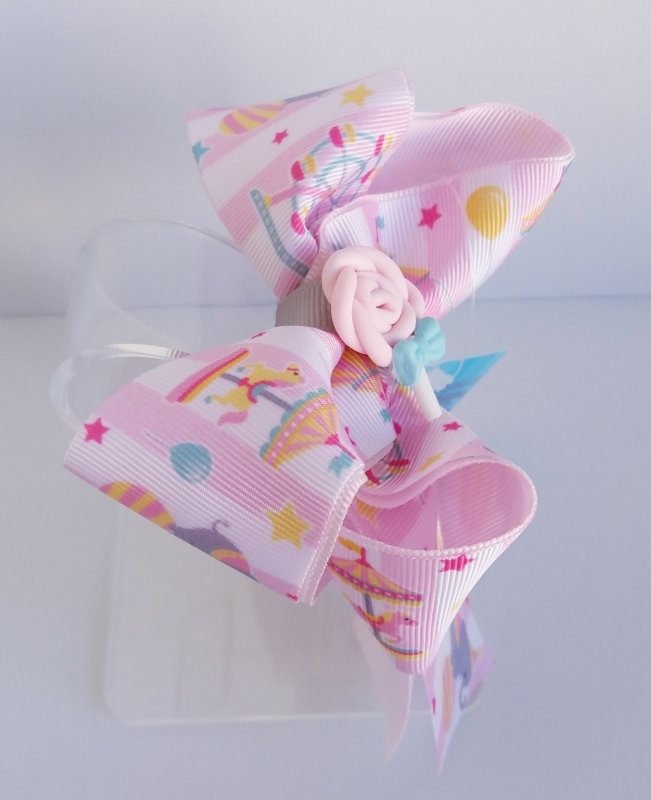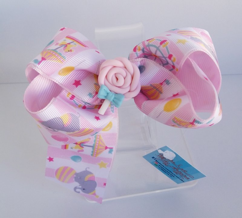 Laço Boutique Duplo Ponta Médio Rosa Bebê/Circo LolliPop