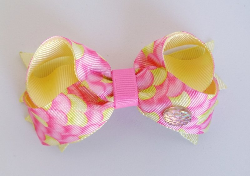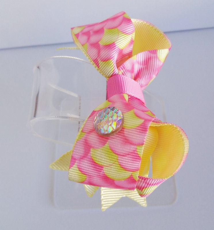 Laço Boutique Duplo PP Amarelo Escama Rosa
