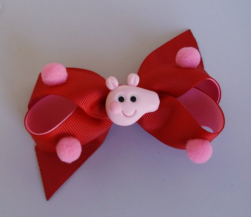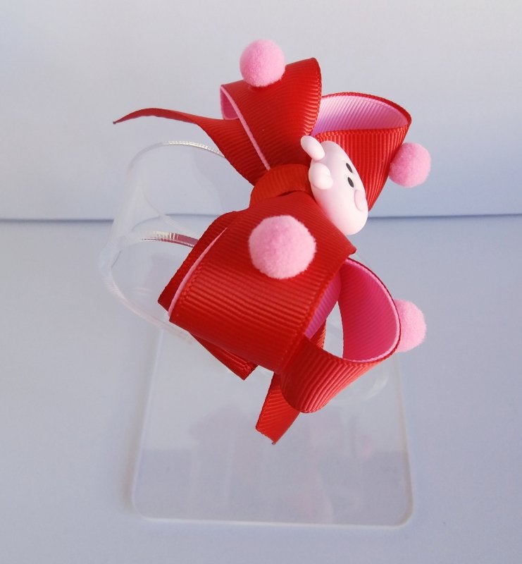 Laço Boutique Duplo PP Vermelho Rosa Peppa
