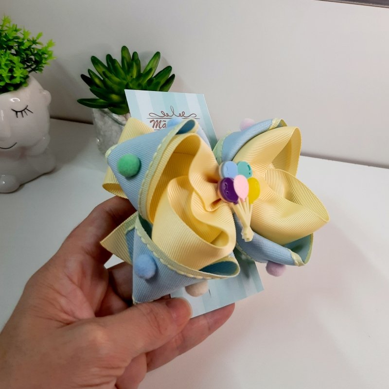 Laço Boutique Sobreposto Grande Azul Bebê/Amarelo Balões (Cod. B387)