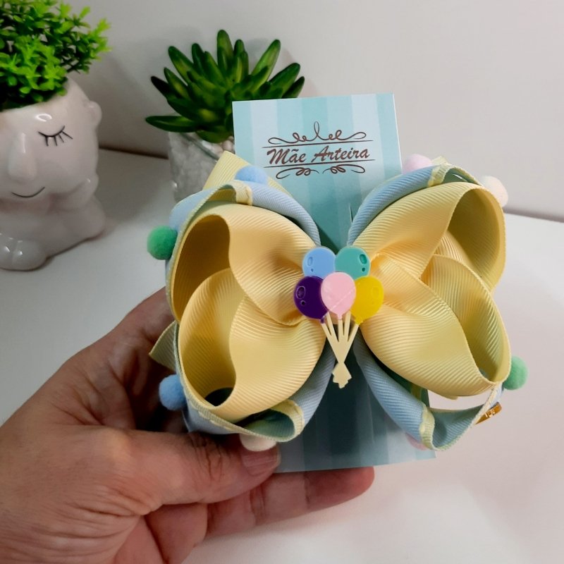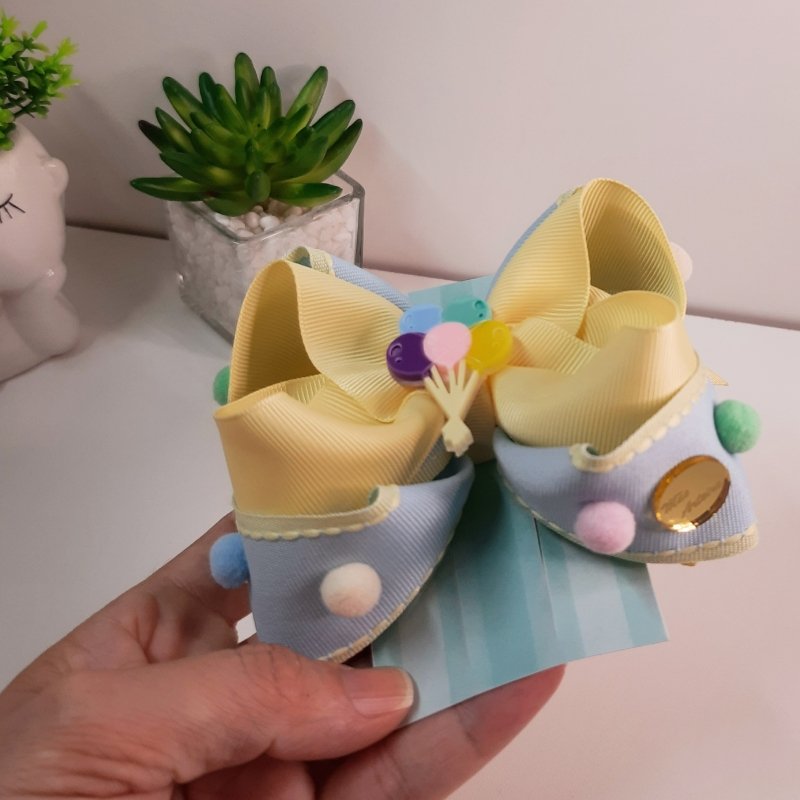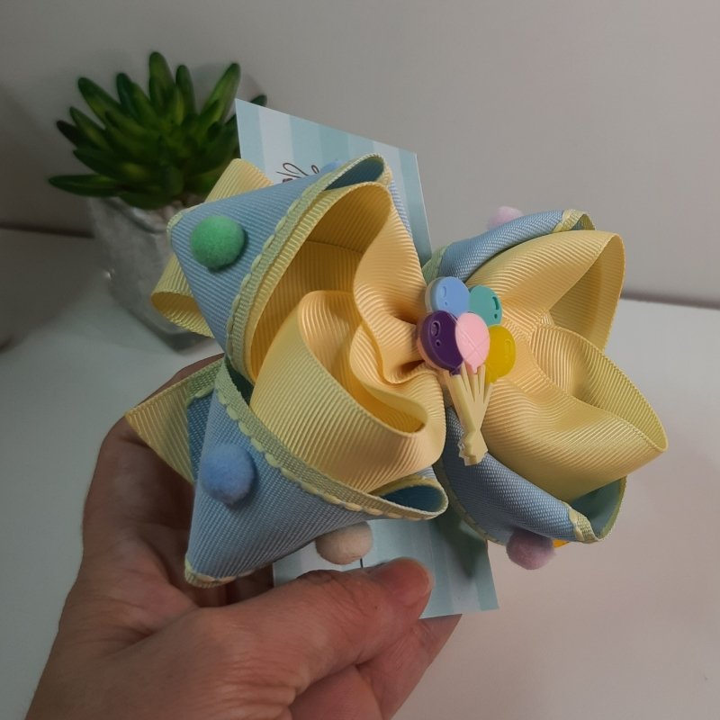 Laço Boutique Sobreposto Grande Azul Bebê/Amarelo Balões