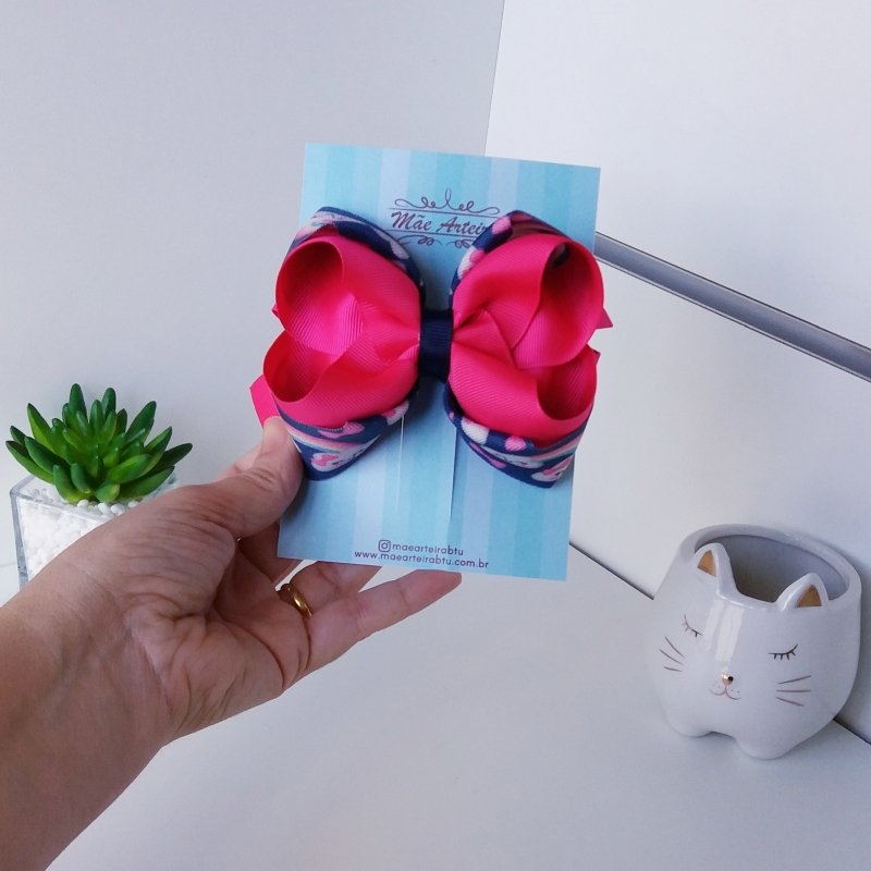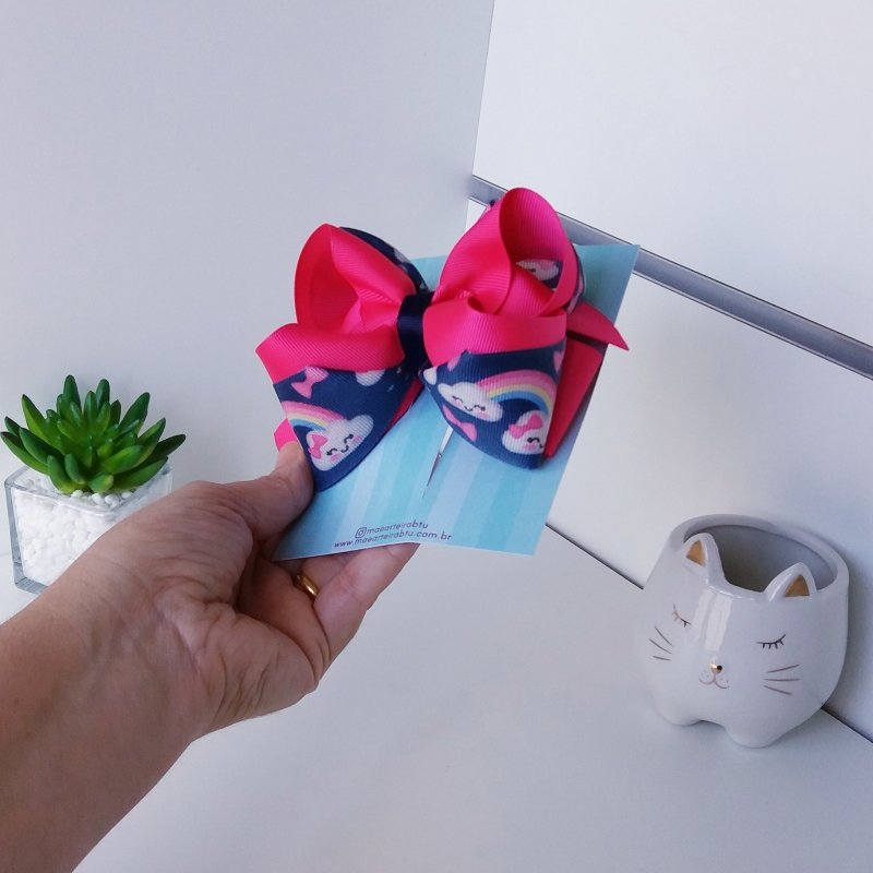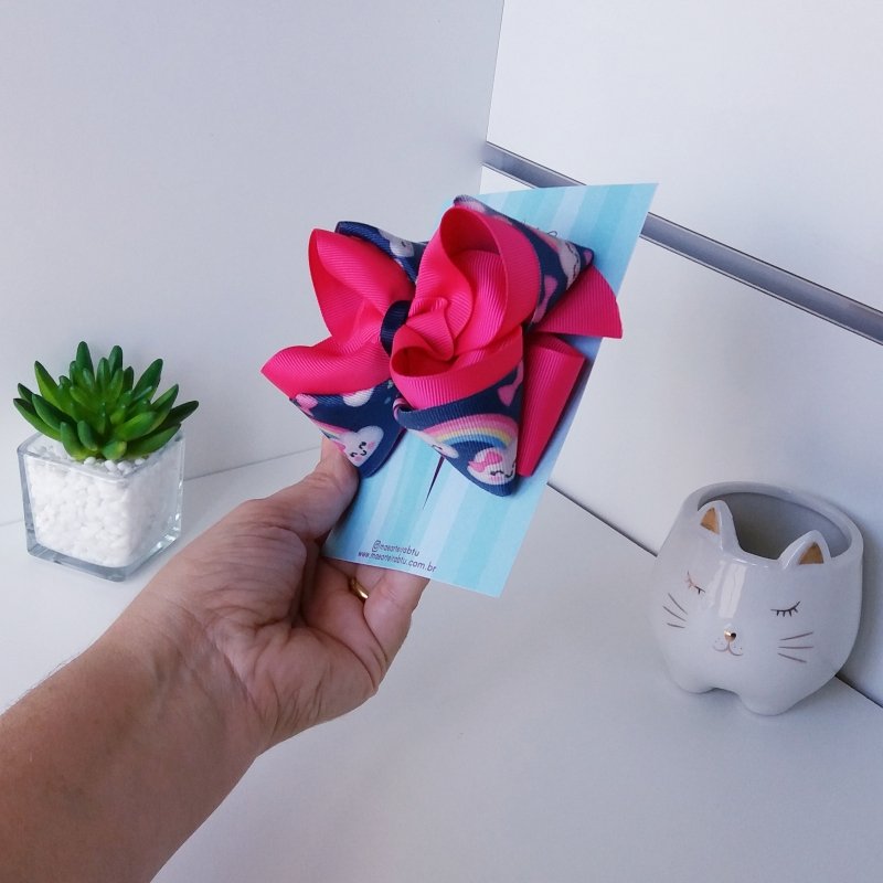 Laço Boutique Sobreposto Grande Nuvem Azul e Pink
