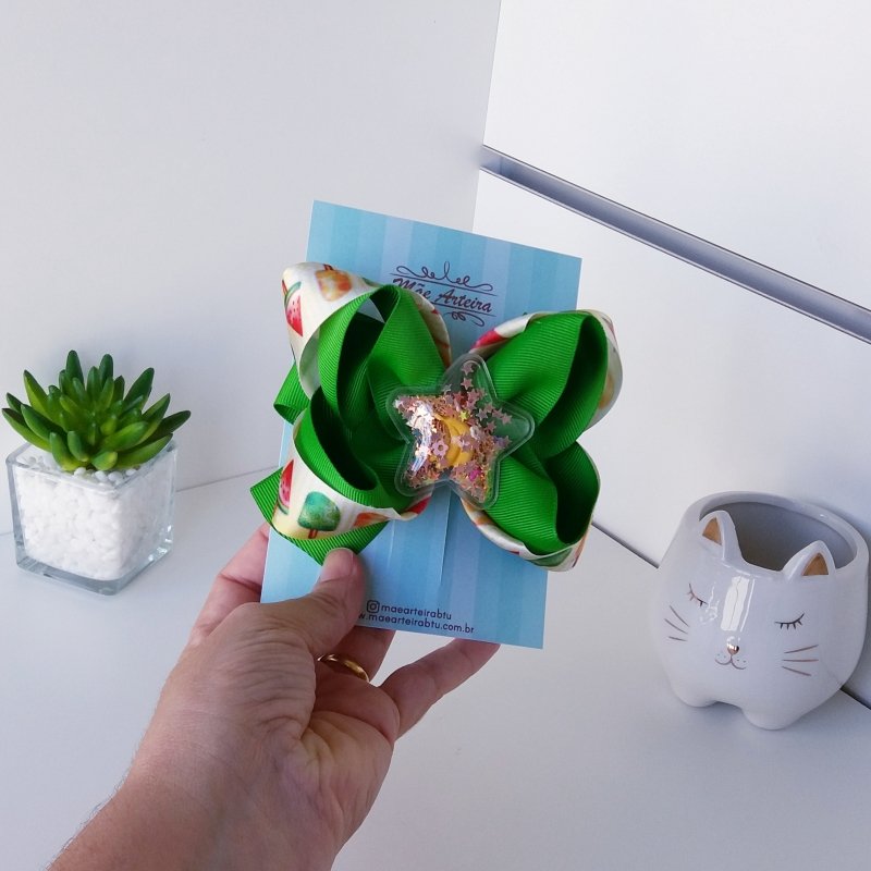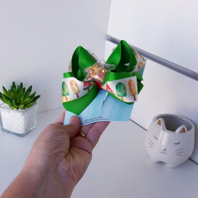 Laço Boutique Sobreposto Grande Picolé e verde/Star Transparente