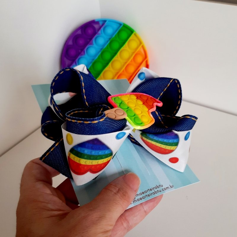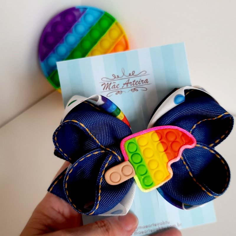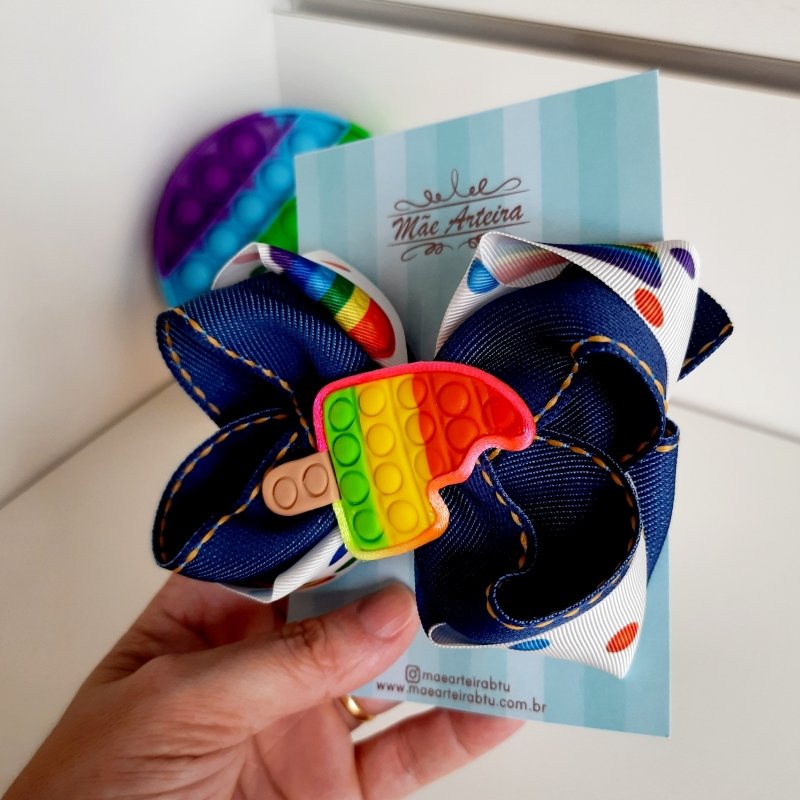 Laço Boutique Sobreposto Grande Pop It/ Branco Jeans Picolé