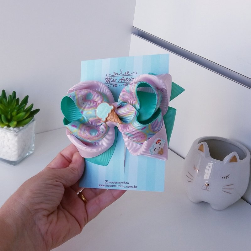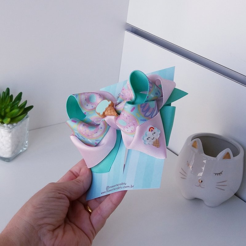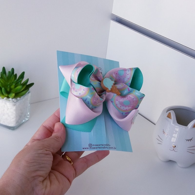 Laço Boutique Sobreposto Grande Rosa e Donuts/Ice Cream