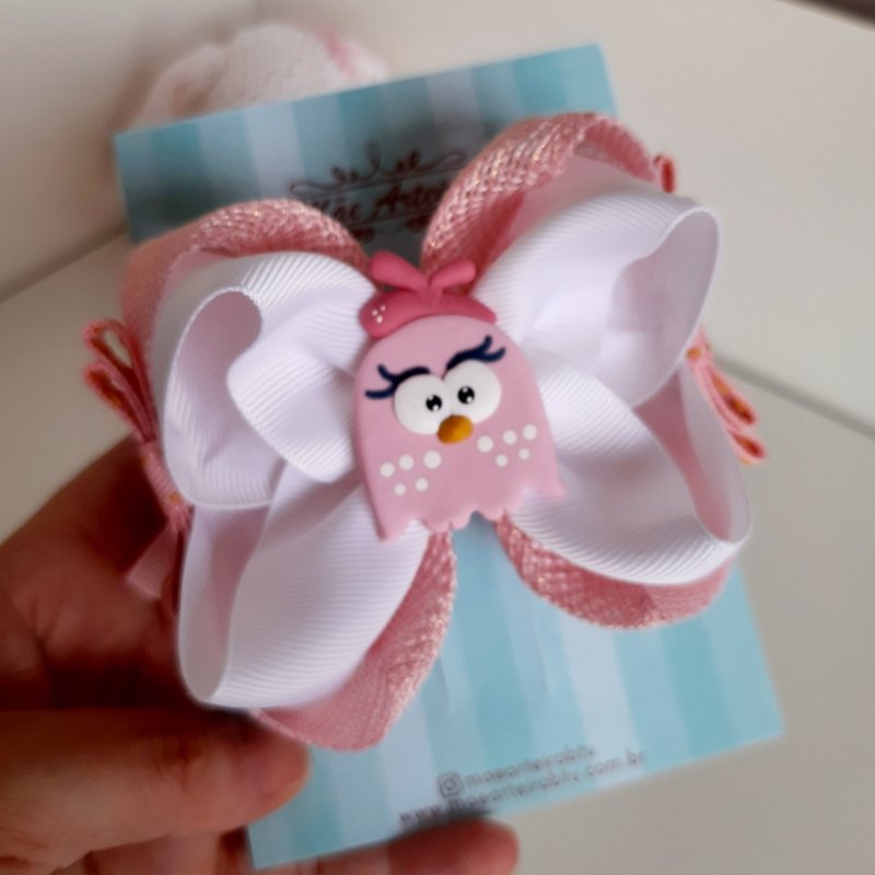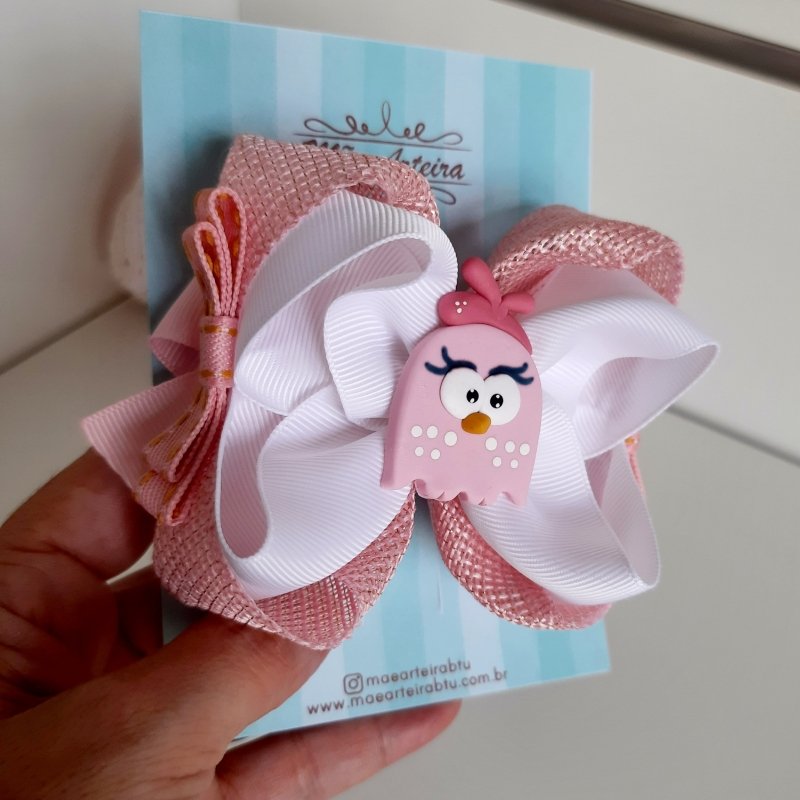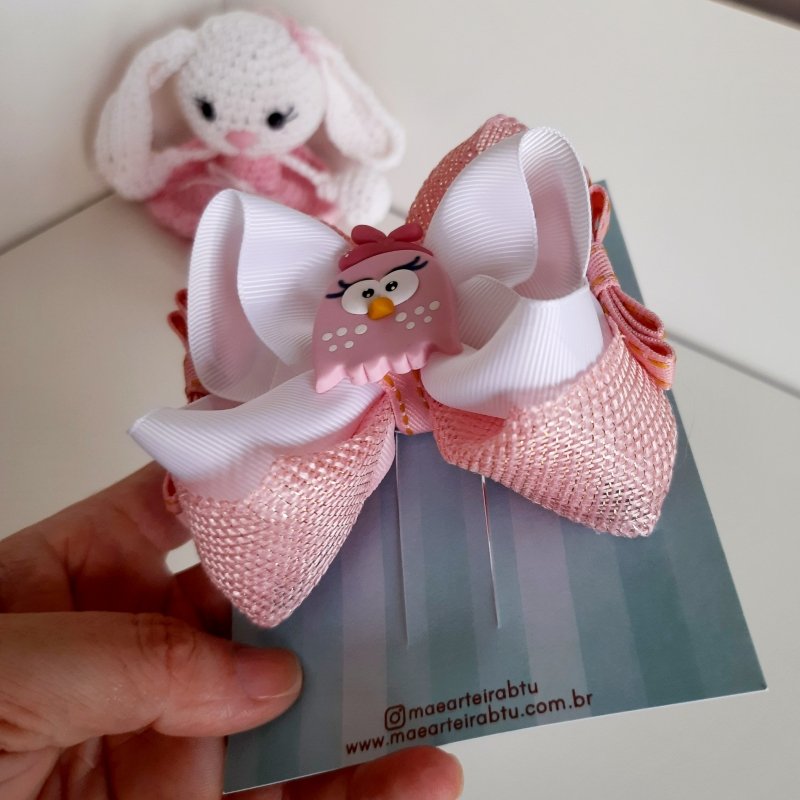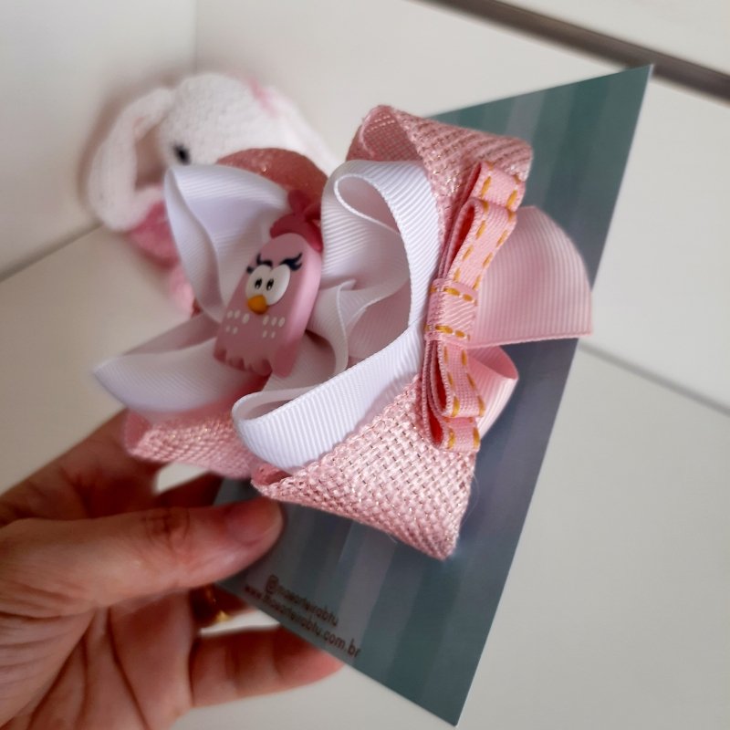 Laço Boutique Sobreposto Grande Rosa Glitter Juta/ Galinha Pintadinha