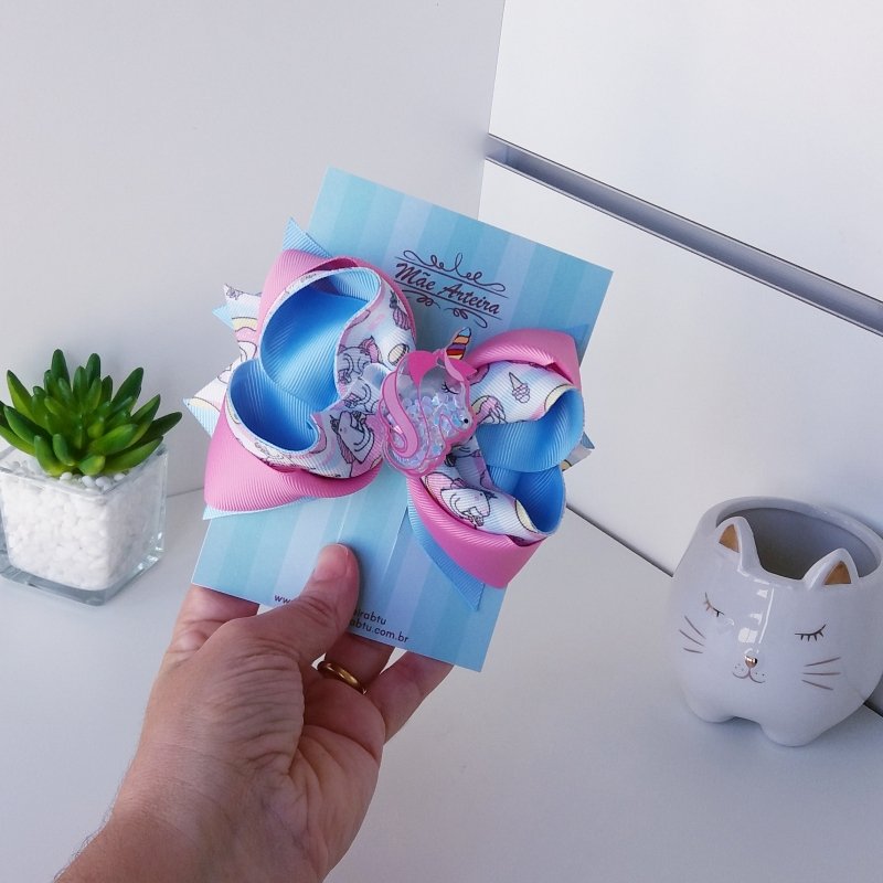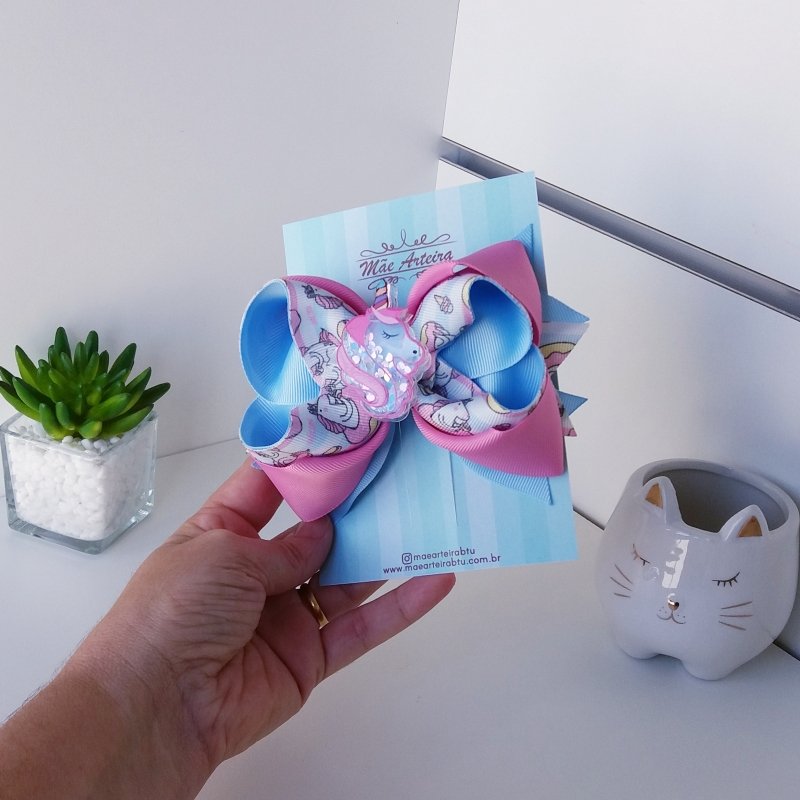 Laço Boutique Sobreposto Grande Rosa Unicórnio Donuts/Unicórnio Acrílico